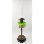 A large and impressive green glass oil lamp with a Palladian style column, stands 70cm tall including chimney. Wick winder stamped DUPLEX