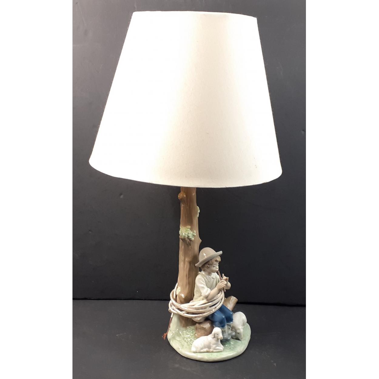 A NAO table lamp with a shepherd boy, stands 52cm inc. shade. No damage to extremities.