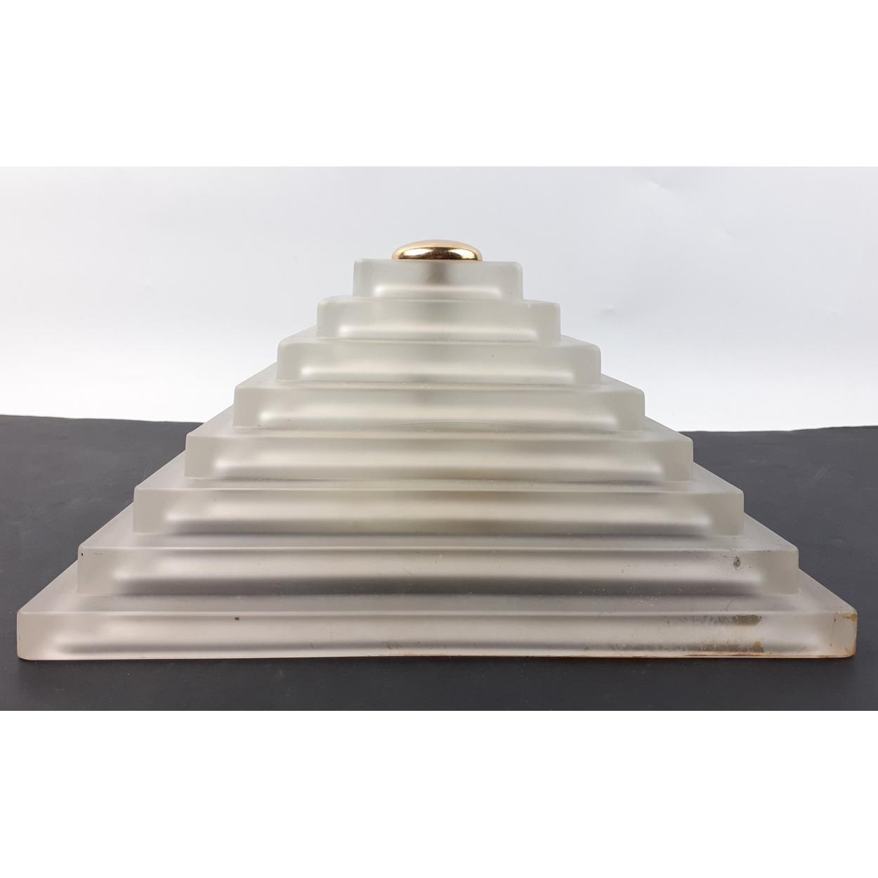 A beautiful opalescent glass step pyramid style ceiling lamp 25x25cm approx, with ceiling mount
