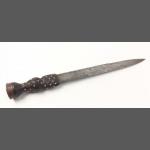 An antique Victorian Highland Pipers dirk / dagger 30cm long with etched blade, and Victorian proof stamp. Maker Reeves of Birmingham. No scabbard, with damage. Victorian Crown to boss on pommel