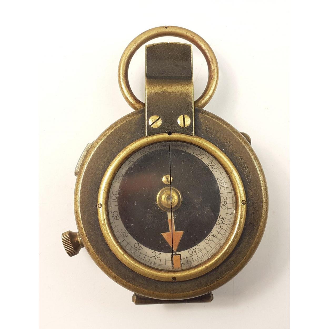 A brass WWI era marching compass with broad arrow mark dated 1917 no. 81435 in excellent condition