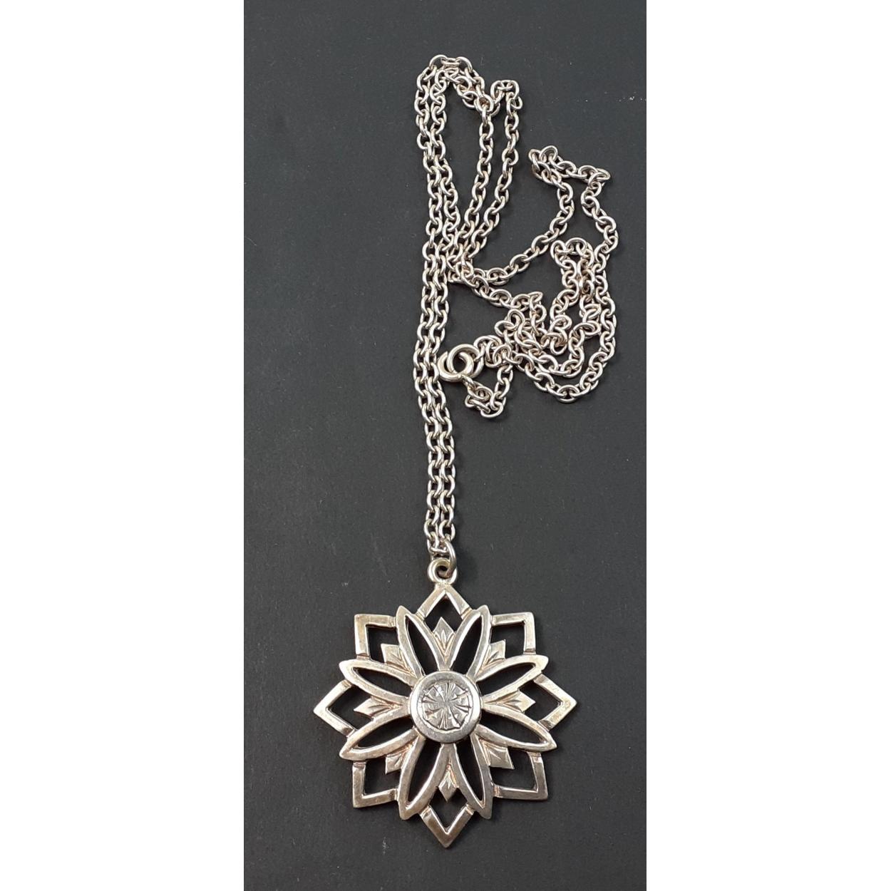 A star-shaped pendant with Edinburgh hallmarks made by JF, with chain stamped sterling, weight 15g approx