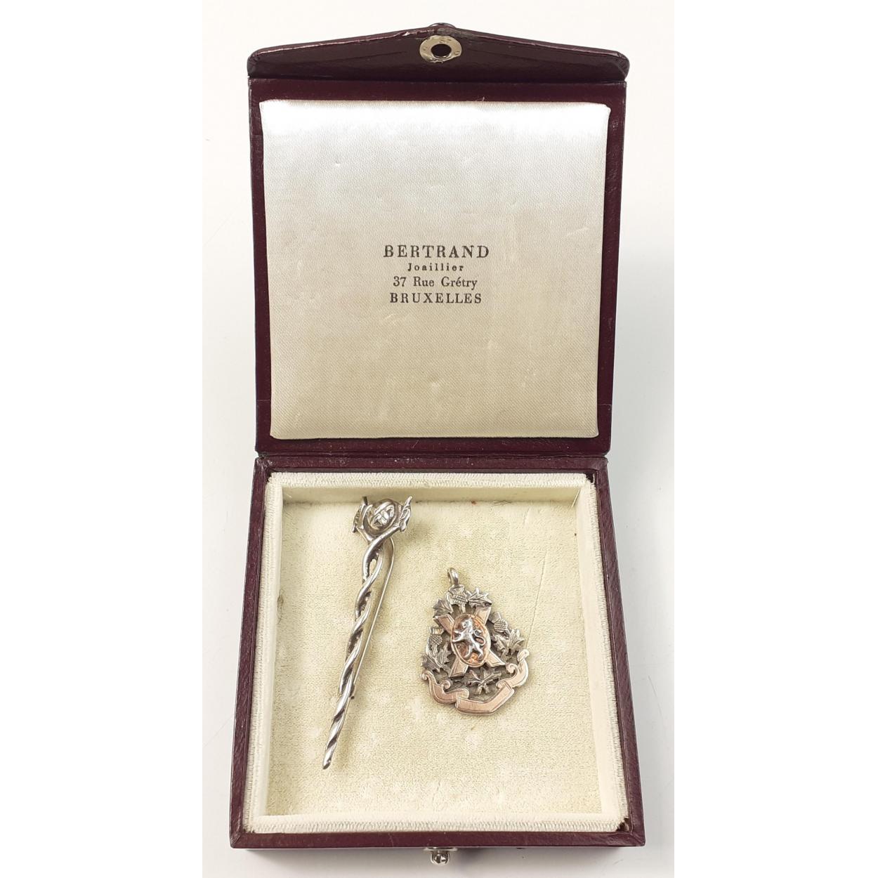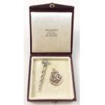 A Scottish Celtic twist kilt pin sterling silver brooch and a rather lovely thistle fob with lion rampant centre, weight 14.4g approx