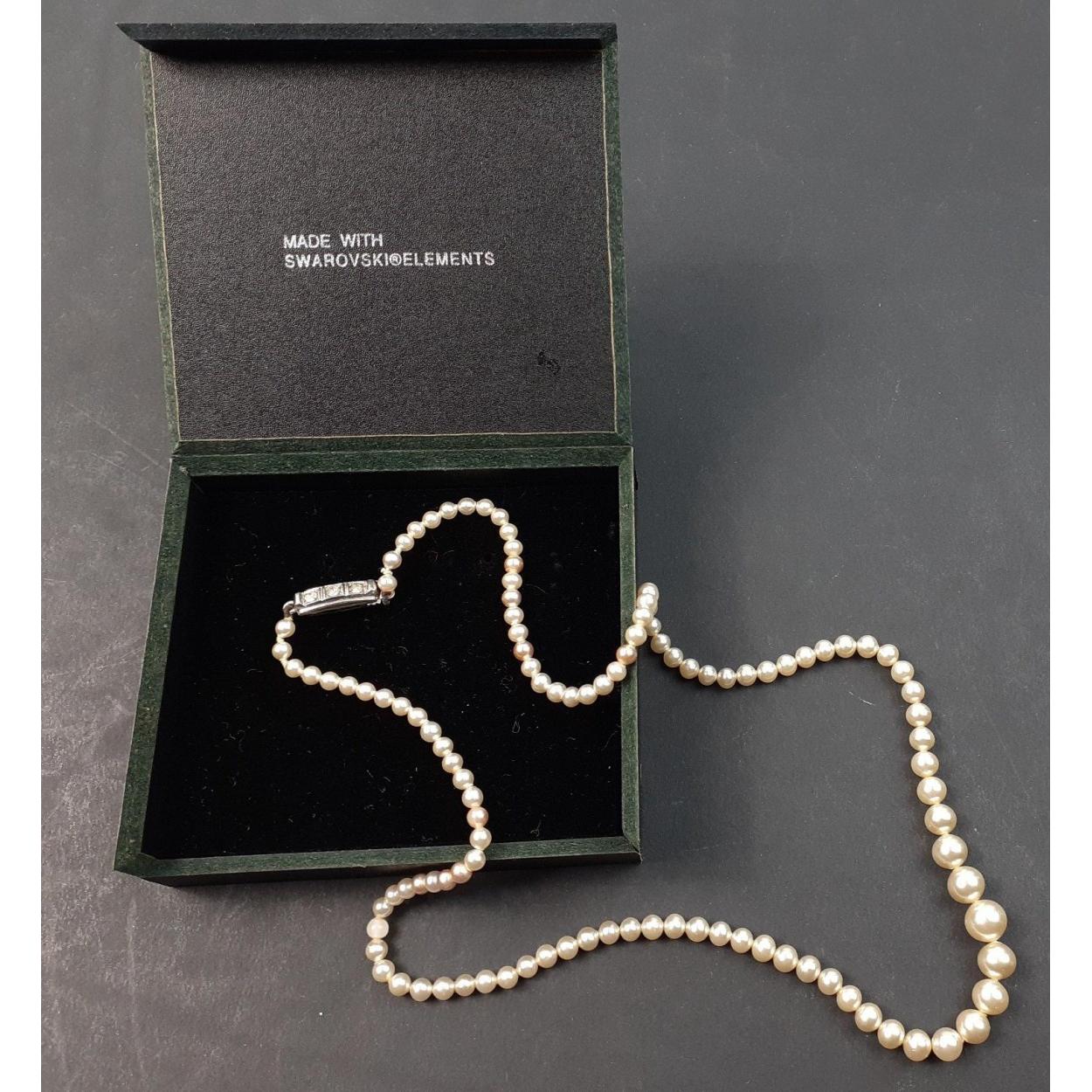 A string of natural graduated pearls with a 835 stamped clasp, 40cm long approx