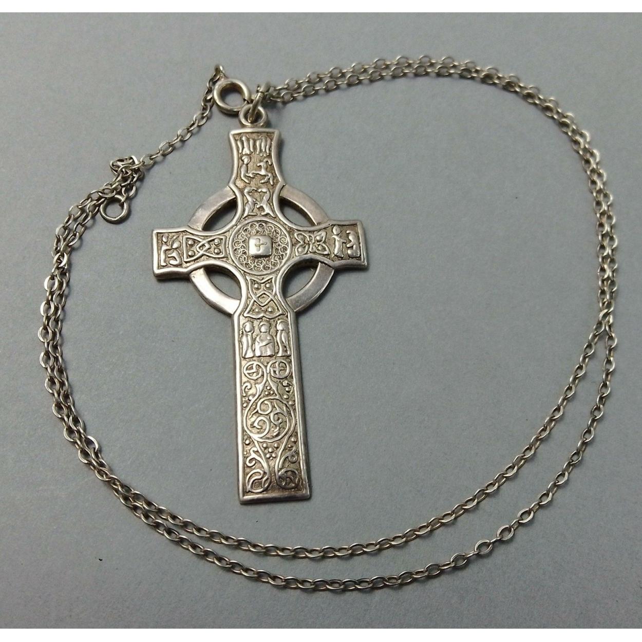A beautiful Celtic cross pendant (5cm long approx), with an Edinburgh hallmark and a small italic c maker's mark SMD, on a chain marked sterling, weight 10.7g approx