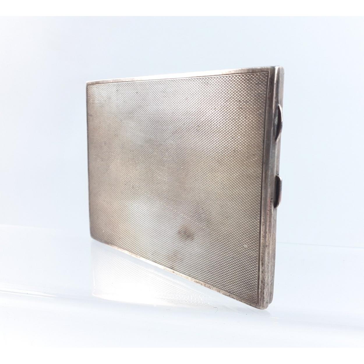 An attractive silver, hallmarked for Birmingham, engine turned cigarette case, weighs 157g approx. with an etched 1946 inscription. In good order.