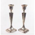 CLASSY! A pair of filled silver candlesticks, Chester 1914, standing 23cm high, base damaged