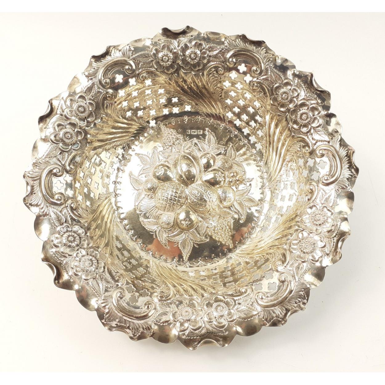 A stunning repousse fully hallmarked 17cm pierced basket in beautiful condition. Hallmarks for Sheffield 1923. Total weight 169.6g approx.