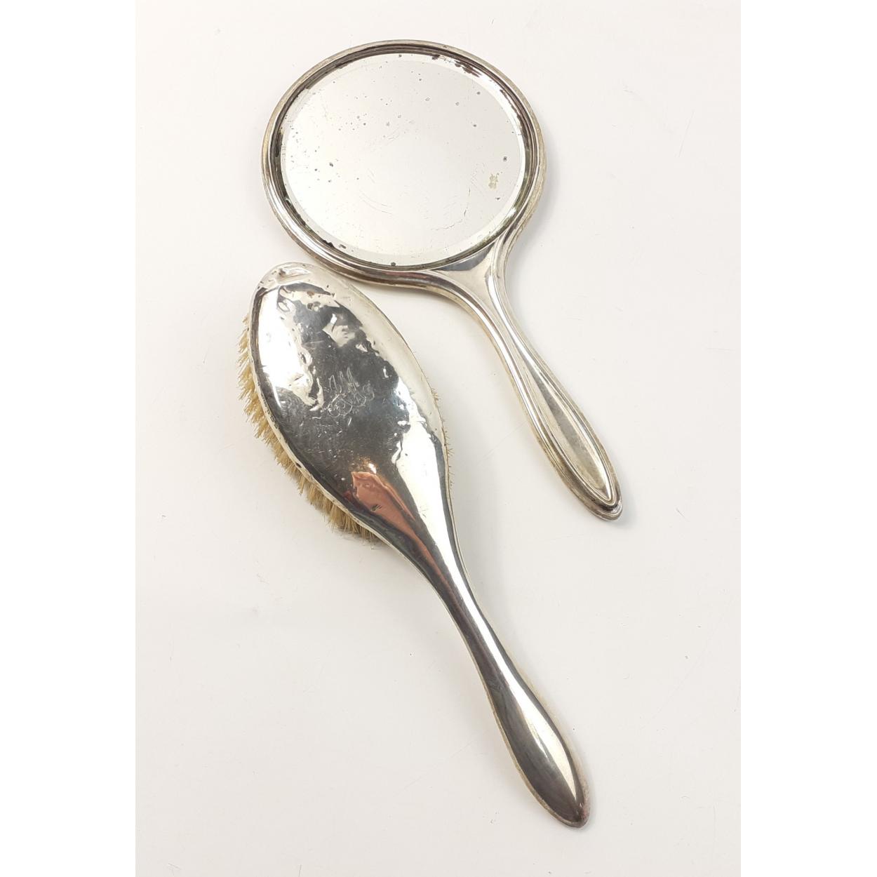 A silver backed brush and table mirror (unmatched pair), total gross weight 457g approx, mirror Birmingham 1918 made by FH Adams (324g gross approx), the brush Birmingham 1923 by S Blanckensee & Son (gross weight 132g approx)