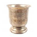 A small silver fully hallmarked (indistinct) christening cup belonging to Edvard Carl Frederik von Mahren, 8cm tall approx, weighing 88.5g approx