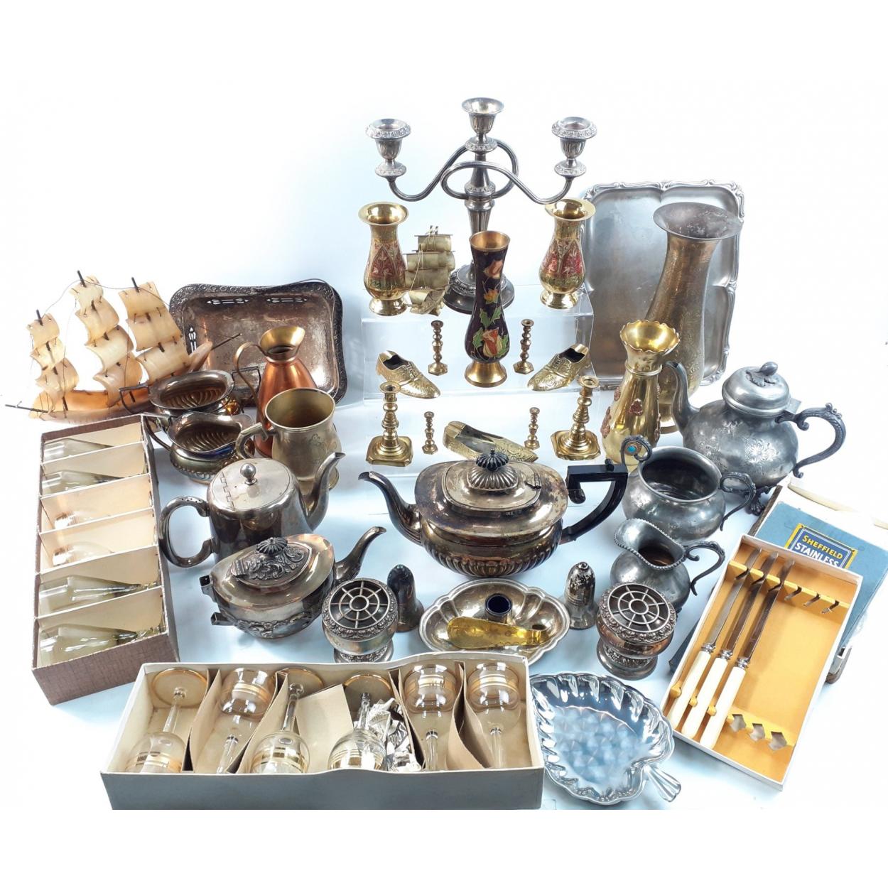 A quantity of EPNS to include teapots, tray, 3 branch candelabra etc