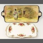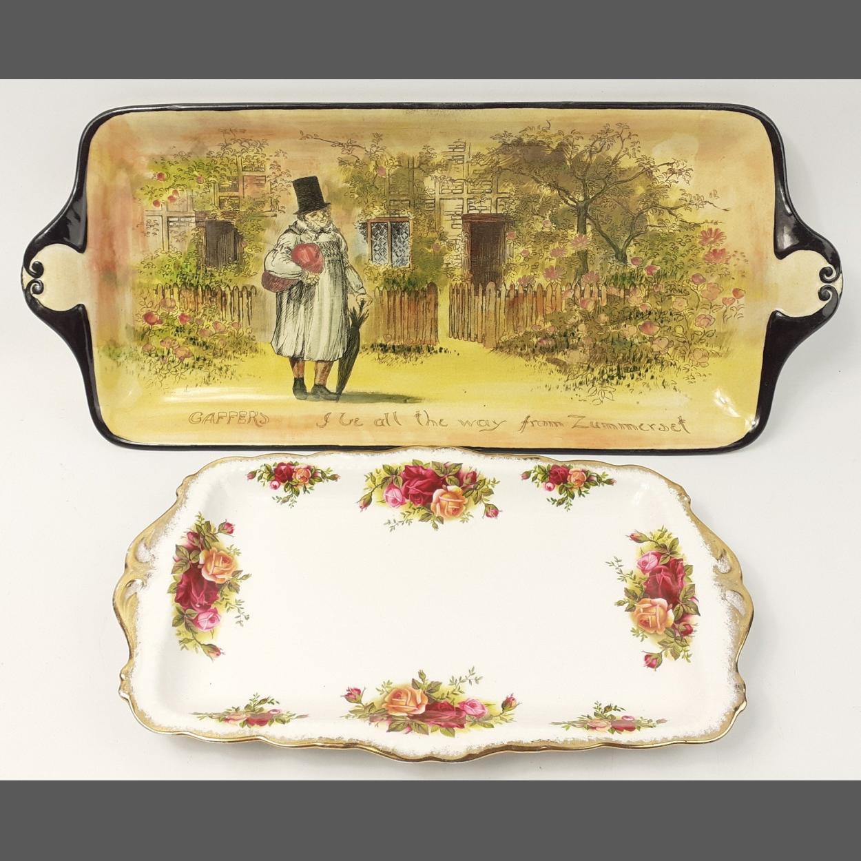 Two sandwich serving plates - one ROYAL DOULTON Gaffers 'I Be All The Way from Zummerset' (46cm), and the other ROYAL ALBERT Old Country Roses (29cm)