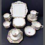 A PARAGON (reg no 695475) tea service comprising a 22cm square sandwich plate, 6 each of cups, saucers and side plates plus a sugar bowl and milk jug