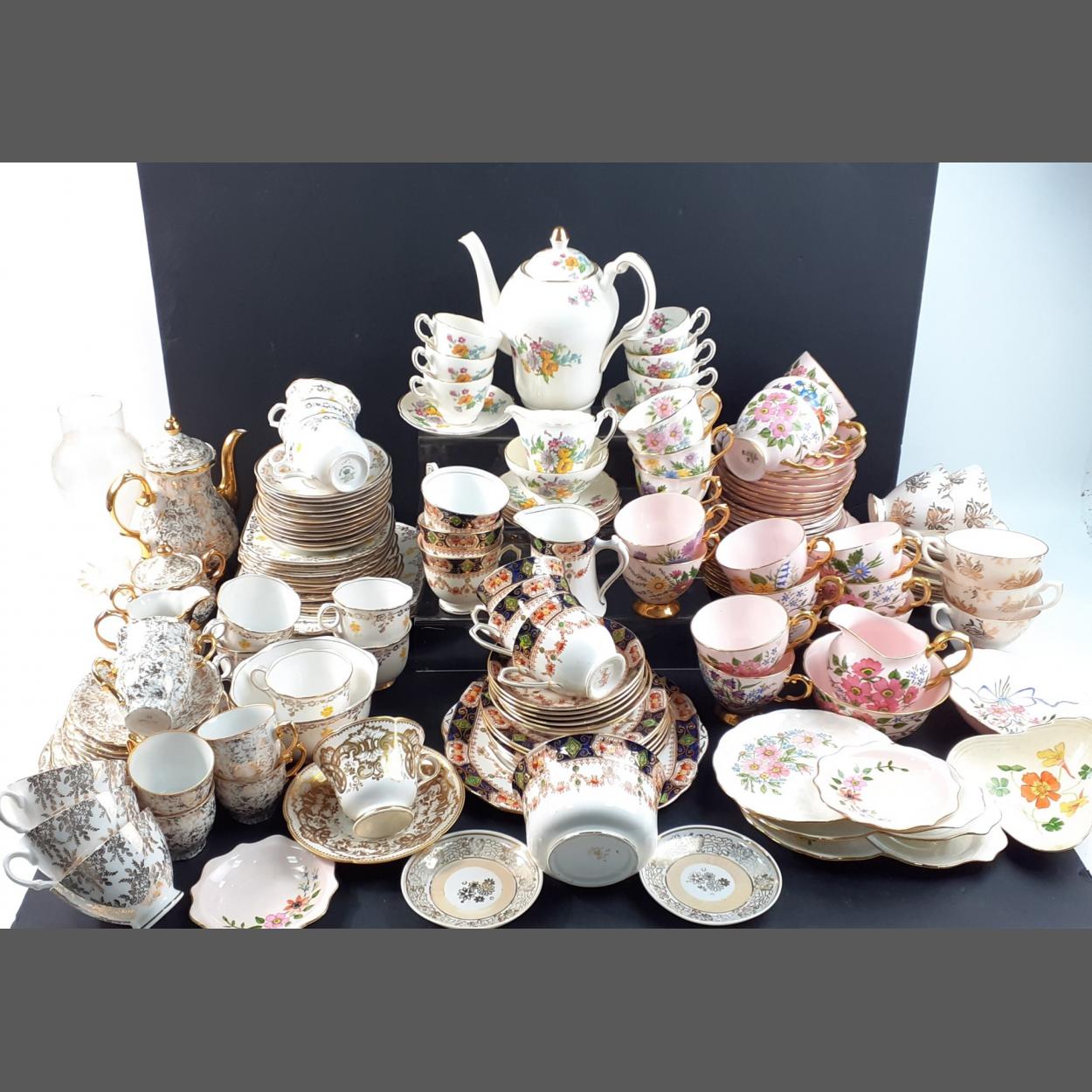 A large collection of useful, pretty decorative china, by Melba, Salisbury, Kent etc mainly cups and saucers with a few teapots