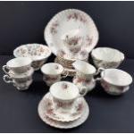 A ROYAL ALBERT Lavender Rose 6 each of cups, saucers, side plates, plus sugar and cream and 1 sandwich plate. All in excellent condition.