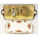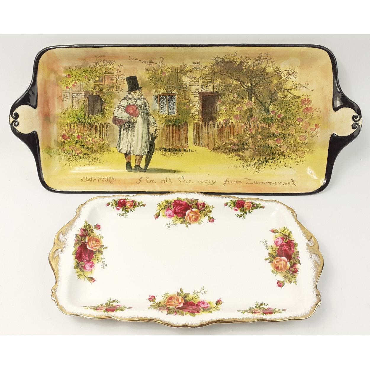 Two sandwich serving plates - one ROYAL DOULTON Gaffers 'I Be All The Way from Zummerset' (46cm), and the other ROYAL ALBERT Old Country Roses (29cm)