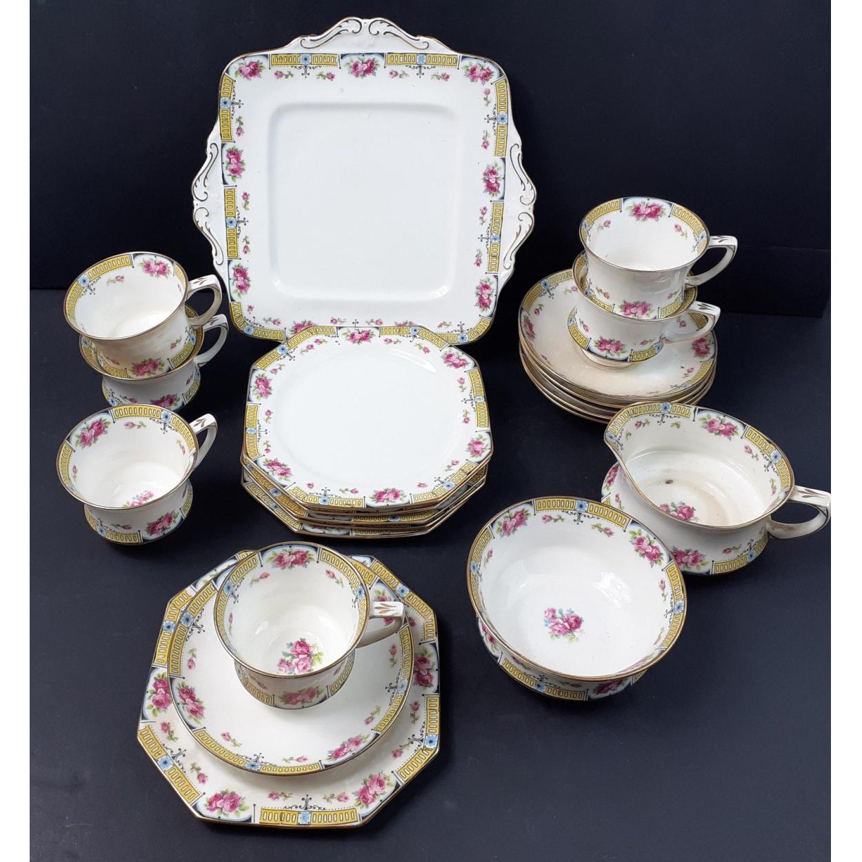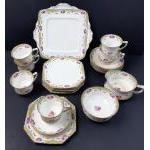 A PARAGON (reg no 695475) tea service comprising a 22cm square sandwich plate, 6 each of cups, saucers and side plates plus a sugar bowl and milk jug