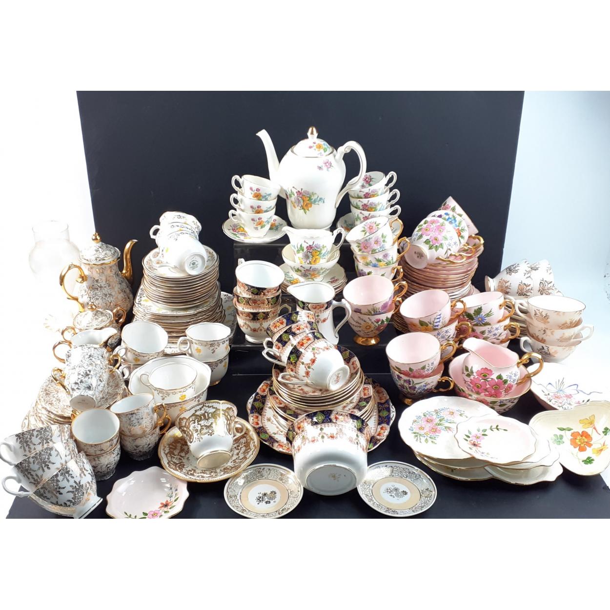 A large collection of useful, pretty decorative china, by Melba, Salisbury, Kent etc mainly cups and saucers with a few teapots