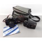 A collection of cameras to include a FUJIFILM digital camera MX-1700 zoom with 8MB smart media, OLYMPUS XA3, MINOLTA AF-S camera and accessories