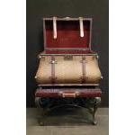 An elaborate campaign chest style and very useful storage box on stand with drawer, with leather straps and metal corners H77xW62xD40cm approx. A super looking thing.