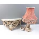 A rococo style small wall shelf (30cm across approx), with matching wall lamp (27cm high approx),
