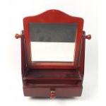 A small dressing mirror with drawer beneath, stands 30cm tall approx