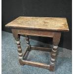 A SOLID turned-leg occasional table with stretchered supports- 18" x 12" top approx