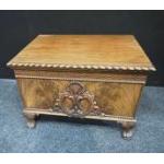 A CHARMING c1930's lidded box with detailed hand-carved scroll-work on four paw feet supports - 25"width x 18" depth x 18" height