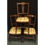 Three bedroom chairs with striped yellow and cream seat pads, turned legs and flower motifs. W: 39cm H: 85cm D: 37cm Seat H: 43cm approx