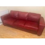 Part of suite: A stylish RED LEATHER/HIDE 3 seater couch. This lot will be bypassed if full suite sold