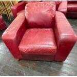 Part of suite: A stylish RED LEATHER/HIDE armchair and footstool. This lot will be bypassed if full suite sold