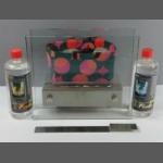 A super little indoor decorative Bioethanol fireplace with 4L bottles of fluid. Simply pour the liquid into the reservoir, light for a warm attractive effect. Just place the baffle in place to close it off. 35 x 30 x 9cm and in good condition.