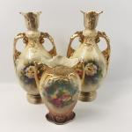 Three pieces of Victorian hand-painted Staffordshire pottery, in fair condition for age