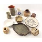 A box of Scottish and other studio pottery pieces to include two Purbeck marked. Nice decorative and useful lot.