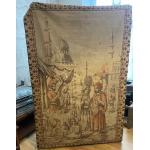 A large 6ft x 4ft large wall tapestry depicting merchants within an Middle Eastern city scene