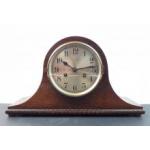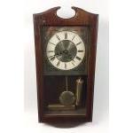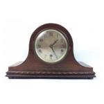A vintage wooden mantle clock. TIMES MONEY stamped movement. Complete with pendulum and key. 41cm across the case.