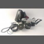 A MINOLTA SR-1s SLR film camera with a ROKKOR-PF 55mm F/1.7 lens with case and also a SANGAMO WESTON light meter in case