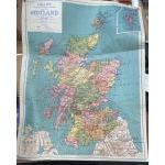 VINTAGE PHILIPS colourful sectional small school-room map of Scotland hessian backed - dimensions - 93cm wide x 125cm height approx
