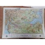 An interesting pressed educational Oxford Relief Map Series 4, Map 4 Glasgow Edinburgh Central Belt in box with two others. Measures 47 x 35cm approx. Dusty from long term storage but undamaged.