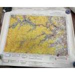 VINTAGE c1950's/60's COLOURFUL ORDNANCE SURVEY showing PEEBLES AND GALASHIELS and another showing EDINBURGH land utilisation survey maps - the Edinburgh map is on canvas style dimensions on larger Edin map 34"x 30" and the slightly smaller Peebles & Galashiels dimensions 26" wide x 33" width approx