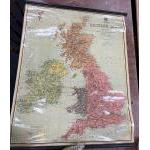 VINTAGE EDUCATIONAL -THE BRITISH ISLES coloured wall chart c1960's classroom wall map by Johnston Ltd Edinburgh & London - dimensions 35" height x 27"