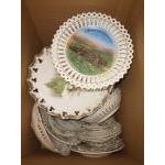 A large collection of decorative plates mostly with cut-out design on edges and many commemorating various places around Scotland and abroad