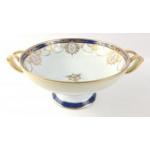 An attractive porcelain bowl (23cm dia), with heavy gilt decoration on a pedestal standing 11cm tall, some slight wear to gilt on handles