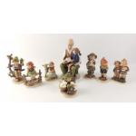 A delightful West German W. GOEBEL (M.J. Huemmal)collection of 8 ceramic child figurines together with a grandfather reading to a young boy sitting on his knee called "Boy - inheriting God's Word" 1979 (Roman/Japan maker). The grandfather figurine is approx. 21cm in height and the child figurines vary in approx. height from 9 -14cm. Figurines in lot are "The Lost Sheep" No.: 680 22; Boy with rabbits (slight damage of cap decoration) No.: 56/0 83; "March Winds" - boy with hands in pockets - No.: 43; Two boys in arm Nr: 123; "Good friends" - girl with kid goat - No.: 182; Boy sitting in apple tree No.: 142 and Girl sitting on fence "Just resting" No.: 112/1. The collection is in very good condition.