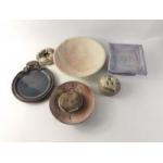 A small collection of WEDGWOOD including the more unusual black and olive colourways. Lot includes a pair of candlesticks, black ashtray, a small lidded pot (damage repaired), trinket box etc