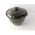 A large VELLOW, SOMERSET studio pottery lidded casserole dish with dark green/grey glaze stands approx 22cm high, 21cm dia of lid, no damage