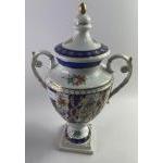 A floral and gilt lidded urn, possible VOLKSTED, standing approx 36cm tall, no visible damage