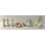 A small collection of decorative items to include a vintage ROYAL DOULTON beagle in a basket (10cm wide), a pair of BESWICK puppies (6cm tall), 3 cherubs and 2 gilded swans one 16cm tall the other 12cm both set with clear stones