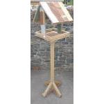 A hand-made wooden bird table, made from recycled wood, standing 195cm tall