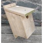 A handmade bird house made from recycled wood measures 36cmH x 23cmD x 15cmW